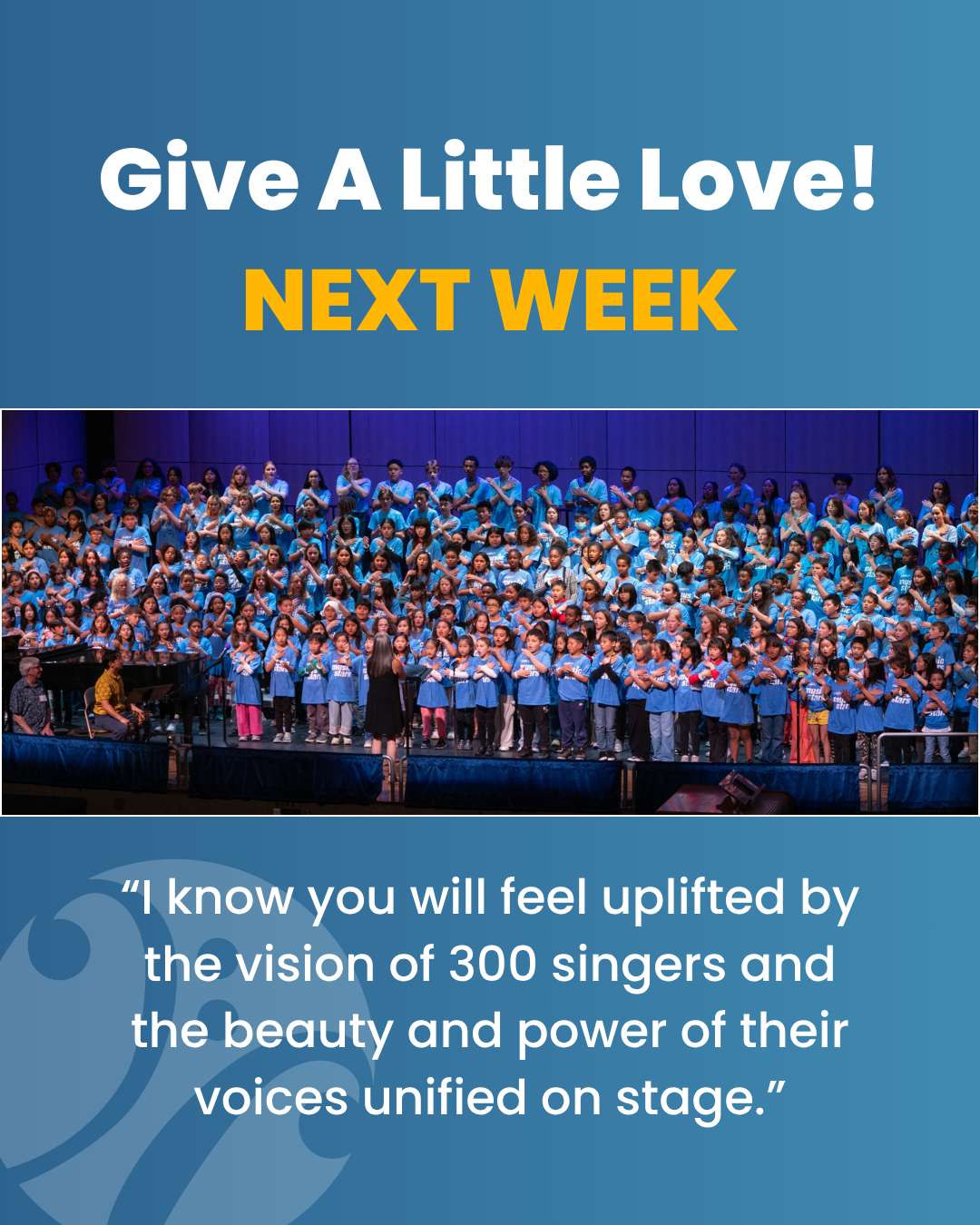 “I know you will feel uplifted by the vision of 300 singers and the beauty and power of their voices unified on stage.”