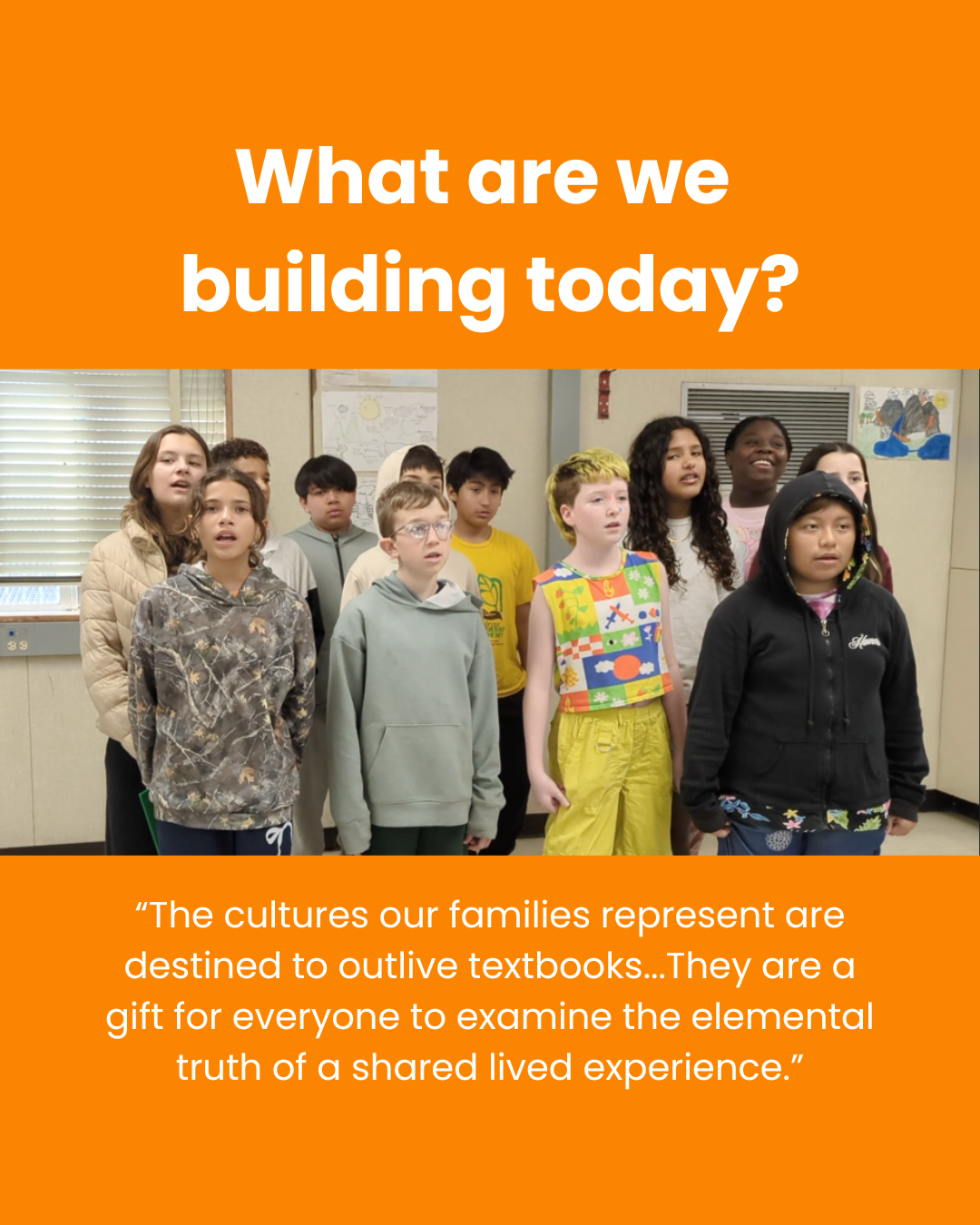 "The cultures our families represent are destined to outlive textbooks. . .They are a gift for everyone to examine the elemental truth of a shared lived experience."